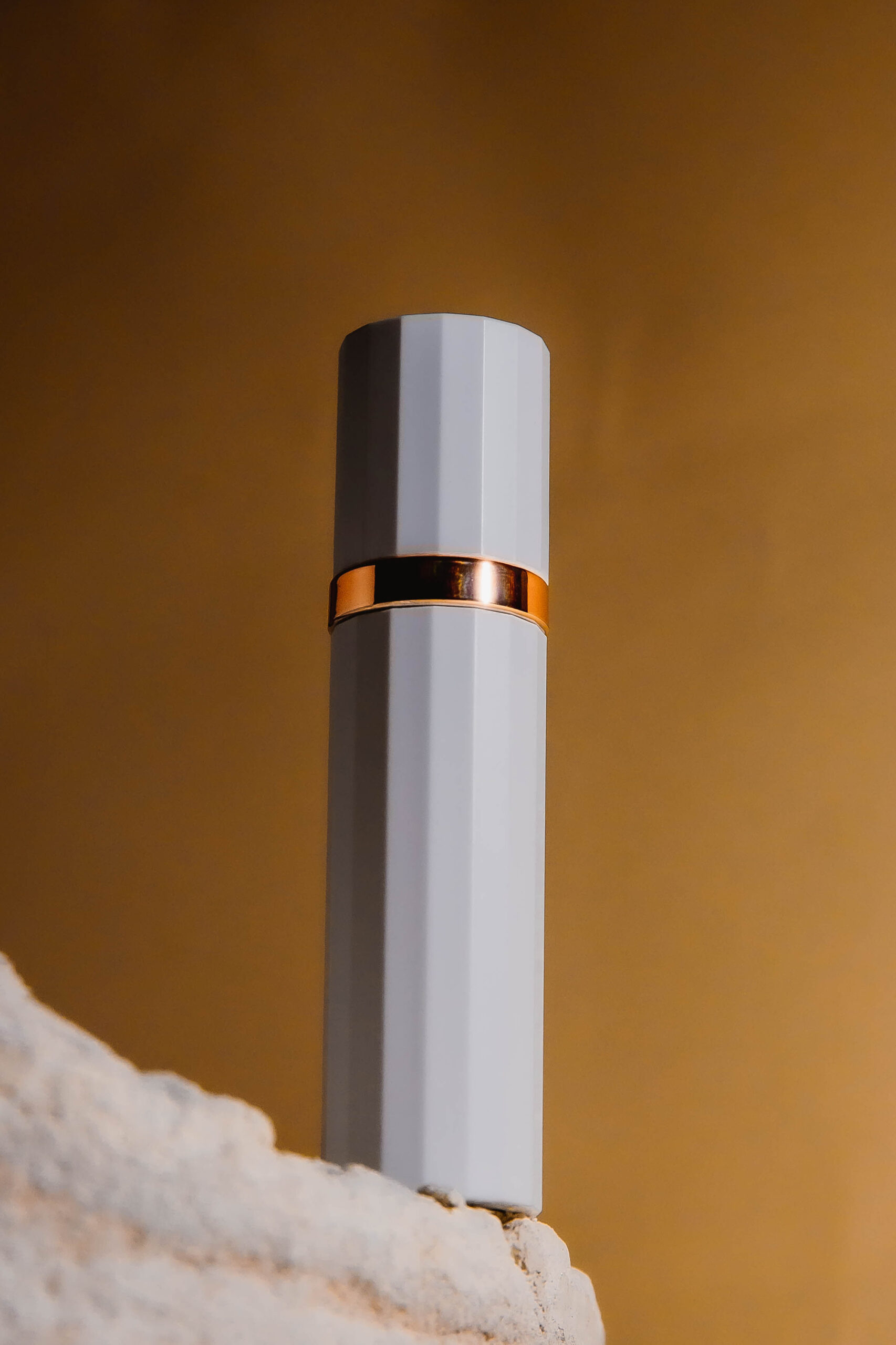 The perfume opens with a smoldering thread of incense and oud, rich and commanding, setting a tone of quiet power. A dark, refined leather emerges, supple yet bold, with a whisper of violet weaving an unexpected softness through the heart of the fragrance. White amber anchors the dry down, warm and persistent — a soft gleam beneath the dark surface.